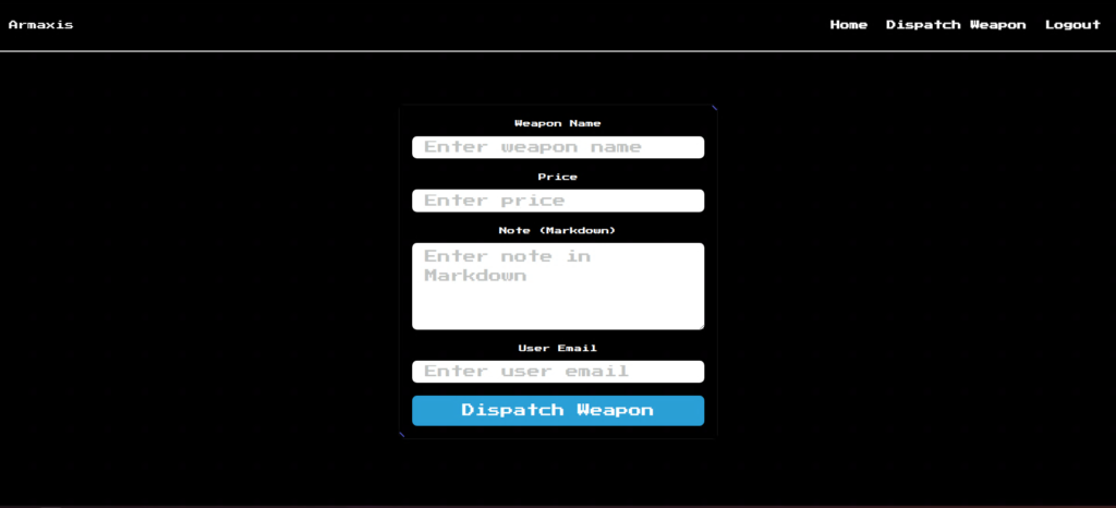 Armaxis では、ユーザー登録・ログイン機能に加えて、パスワードリセット機能と、管理者のみが利用可能な 武器の配備(dispatch)機能 が実装されています。